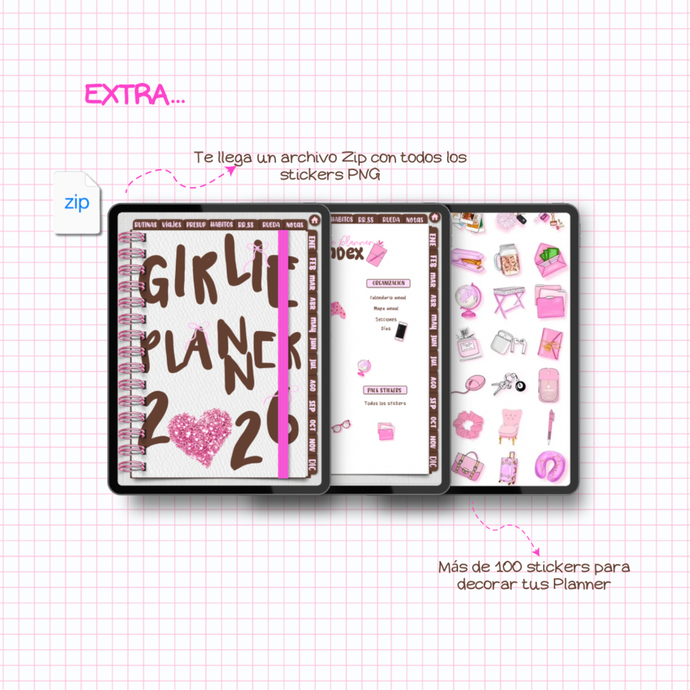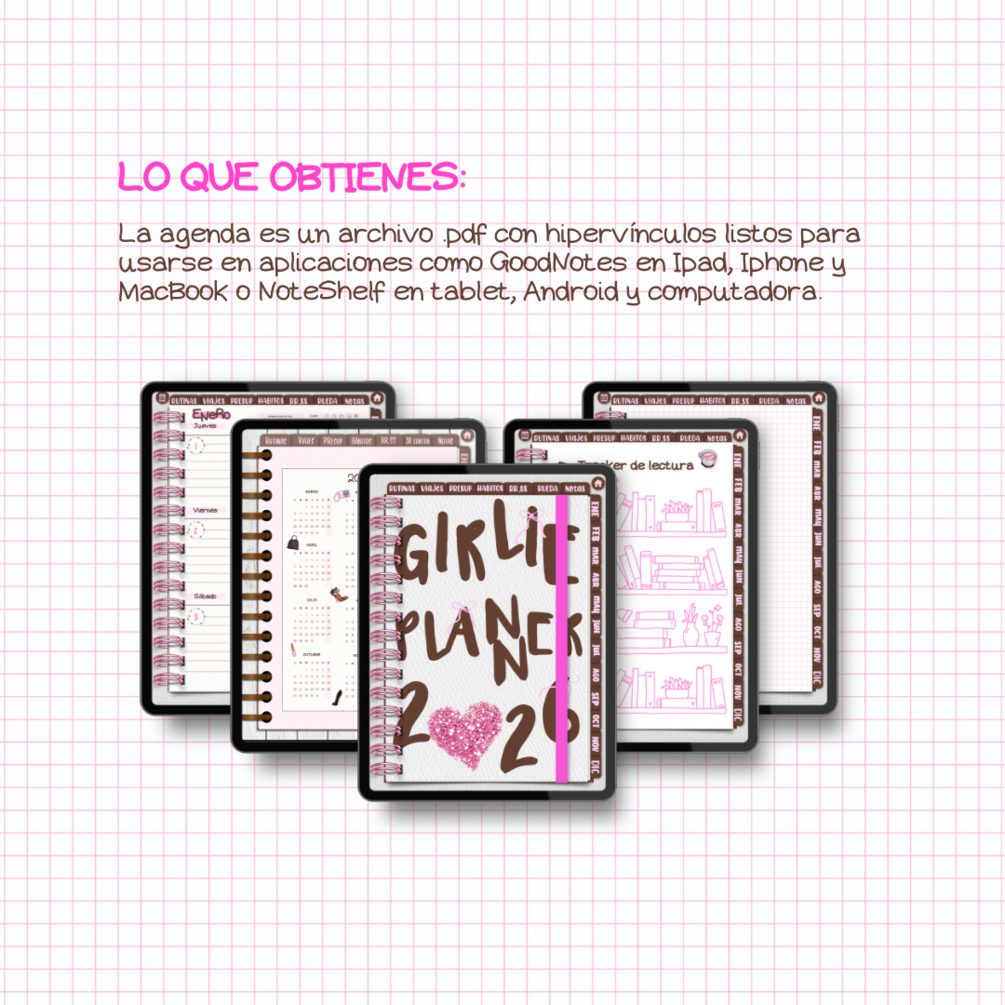 Recibirás un archivo PDF, que es la Planner digital: “Girlie Planner 2026 “ + un archivo Zip con los stickers digitales para decorar tu Agenda